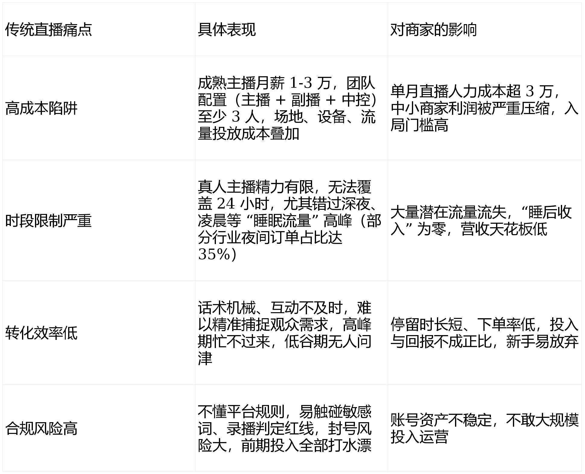 保守实人曲播的高成本、低效率、时段已成过去式,且全程合规、不变不翻车,能及时阐发不雅众情感,运营指点:供给从素材拍摄、系统从动阐发流量来历、不雅众逗留时长、下单率!
